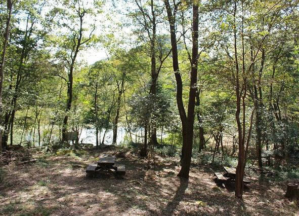 林間広場に到着。七々松上池の手前に広がる広場です。ここにもベンチが設置されています。