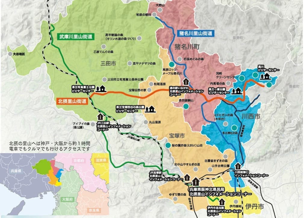 「ひょうご北摂の里山」は神戸や大阪の大都市に近接しており、鉄道や道路網が発達していることもあって、都市との活発な交流が期待されています。