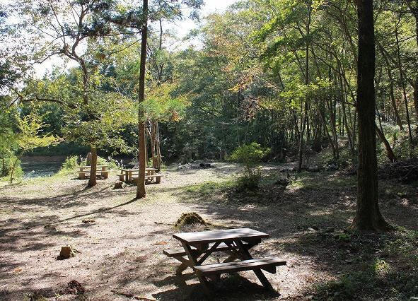 林間広場に到着。七々松上池の手前に広がる広場です。ここにもベンチが設置されています。