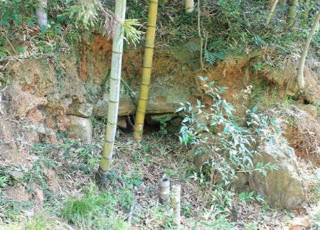 通行禁止 台場クヌギの近くに残る昔使われていた炭窯跡。