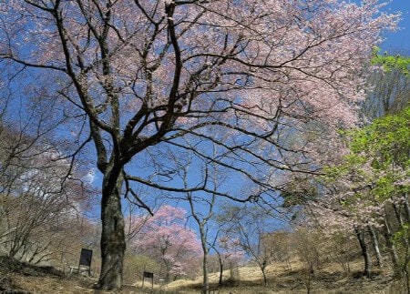 妙見の森を代表するエドヒガン”出会いの妙桜”。全国からの公募によって名前が決定しました。 「妙見山に咲く妙なる(素晴らしく)美しい桜の下で多くの人に素敵な出会いがありますように」との願いが込められています。もう見れないかと思うと寂しいですね。
