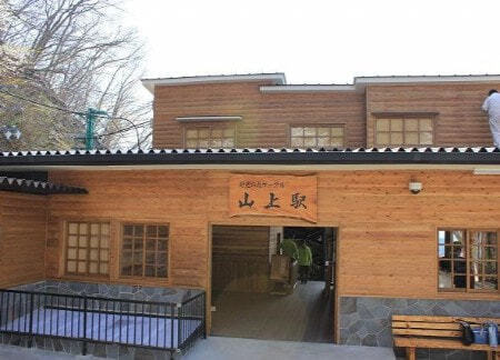 ケーブル山上駅。 ハイキングの疲れを癒す足湯もありました。