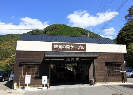 山小屋風の妙見の森ケーブル黒川駅。 閉鎖されました。裏にある「北摂里山トイレ」は使えます。
