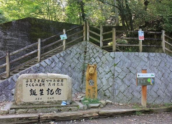 桜の園亦楽山荘の入り口は木製彫刻が目印となっています。