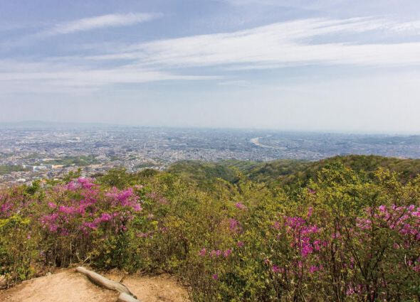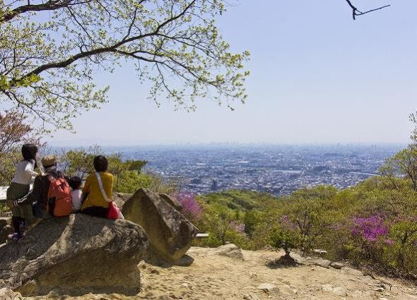大阪平野のパノラマビューを楽しめるスポット。空気が澄んでいれば関西国際空港も見えます。