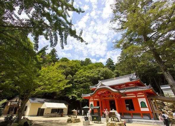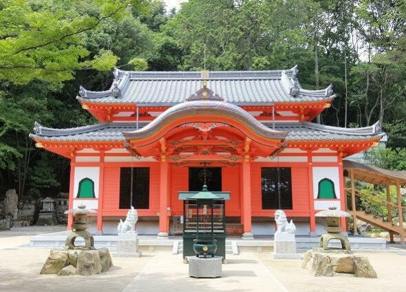 改修工事が終わり、平成26年7月に落慶法要が行われました。鮮やかな朱色の社殿が印象的です。